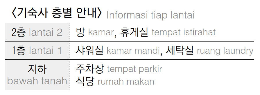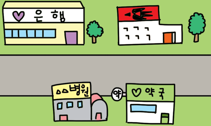 EPS-TOPIK TAMBAHAN TEXTBOOK 2015 BAB 12 SELAMAT DATANG-어서 오세요EPS-TOPIK TAMBAHAN TEXTBOOK 2015 BAB 12[1~2] 다음 그림을 보고 맞는 문장을 고르십시오.1. ① 뒤로 가세요. ② 왼쪽으로 가세요. ③ 앞으로 가세요 ④ 오른쪽으로 가세요 None [1~2] 다음 그림을 보고 맞는 문장을 고르십시오.2. ① 올라가세요. ② 내려가세요. ③ 오른쪽으로 가세요. ④ 건너편으로 가세요. None [3~5] 빈칸에 들어갈 가장 알맞은 것을 고르십시오.3. 가: 약국이 어디에 있어요?나: ____________________. ① 병원 앞에 있어요 ② 병원 옆에 있어요 ③ 은행 옆에 있어요 ④ 우체국 뒤에 있어요 None [3~5] 빈칸에 들어갈 가장 알맞은 것을 고르십시오.4. 가: 빵집이 어디에 있어요?나: ___________________. ① 모두 얼마예요? ② 몇 개 드릴까요? ③ 이거 다섯 개 주세요. ④ 사과 다섯 개 주세요. None [3~5] 빈칸에 들어갈 가장 알맞은 것을 고르십시오.5.가: 식당이 어디에 있어요?나: _________________. ① 줬어요 ② 깎았어요 ③ 넣었어요 ④ 바꿨어요 None 1. 들은 것을 고르십시오.1.https://cbtepstopik.com/wp-content/uploads/2022/06/6-2.mp3 ① 내려가세요 ② 들어가세요 ③ 돌아가세요 ④ 올라가세요 None 2. 대화를 듣고 알맞은 것을 고르십시오.2.https://cbtepstopik.com/wp-content/uploads/2022/06/7-2.mp3 ① 경찰서 뒤에 있어요. ② 경찰서 앞에 있어요. ③ 경찰서 옆에 있어요. ④ 경찰서 안에 있어요. None Time's up
